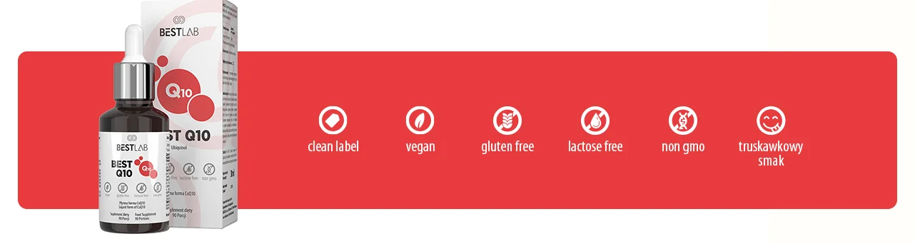 BestQ10 to nowoczesna, płynna formuła koenzymu Q10 w postaci ubichinolu – zredukowanej, lepiej przyswajalnej formy Q10 o naturalnym, truskawkowym smaku.