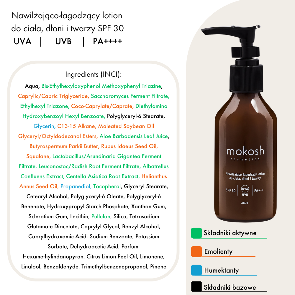 Mokosh Nawilżająco-łagodzący lotion do ciała, dłoni i twarzy 100 ml SPF 30 UVA | UVB | PA+++